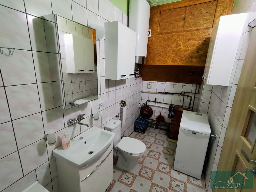 Na podłogach znajdziemy deski oraz kafle, okna PCV. Ogrzewanie za pomocą pieca węglowego (do budynku jest dociągnięty gaz). Ciepła woda z bojlera ogrzewanego piecem węglowym bądź podgrzewaczem elektrycznym. Kuchenka na gaz.